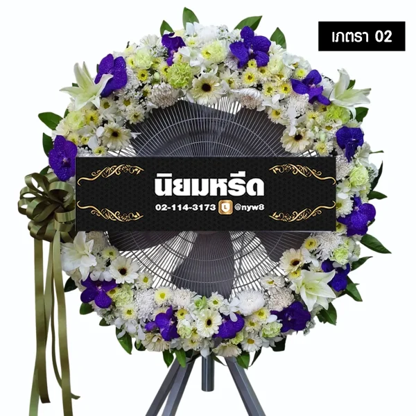 - ขอสงวนสิทธิ์ในการเปลี่ยนแปลง “ชนิดดอกไม้ที่ใช้ตกแต่ง” ตามความเหมาะสมในแต่ละฤดูกาล โดยให้ภาพรวมและคุณภาพอยู่ระดับเดียวกับรูปแบบพวงหรีดที่เลือก